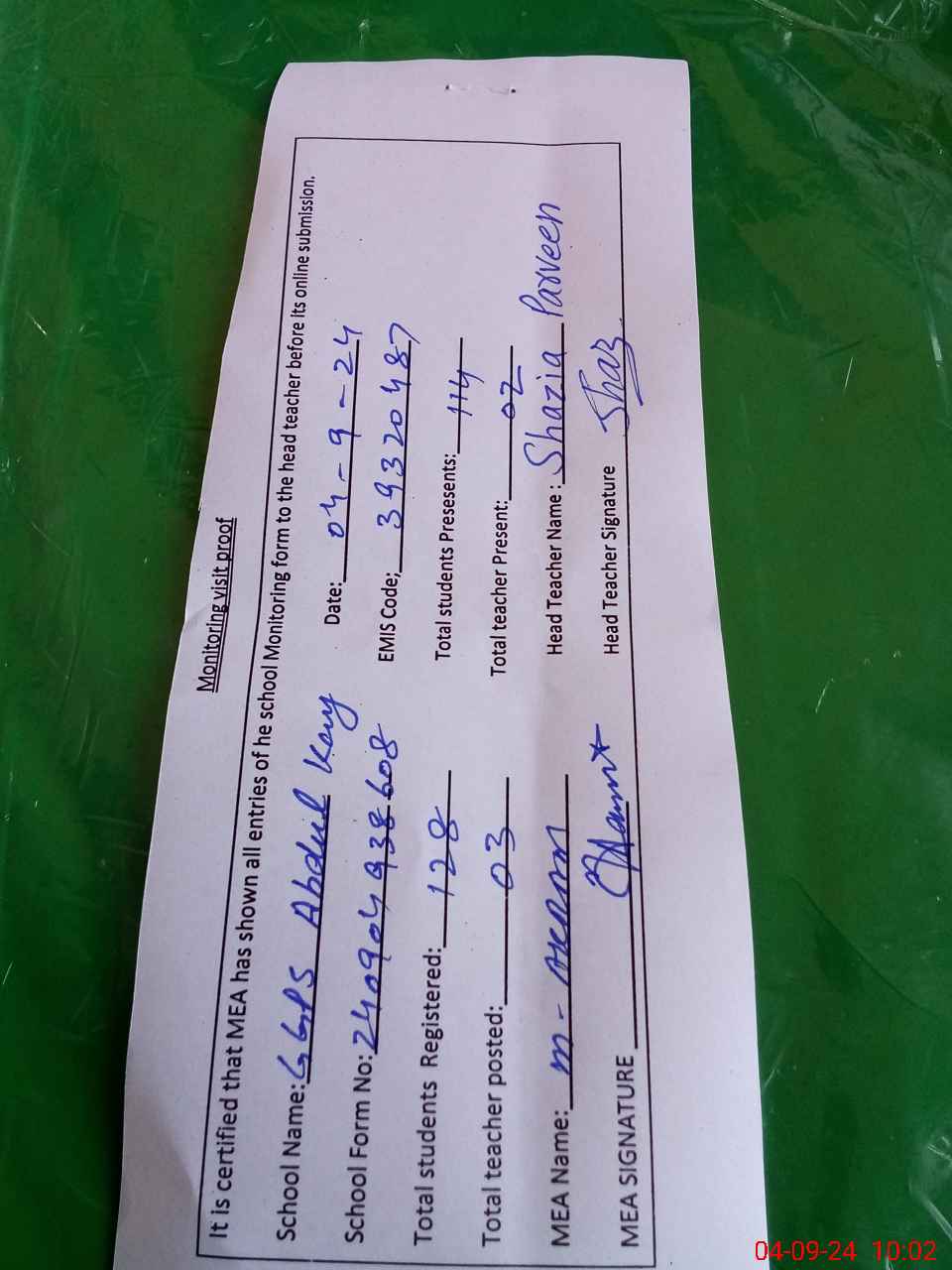 | EMIS Code: 39320487 | Name of School: GGPS WAN ABDUL KAY | |||