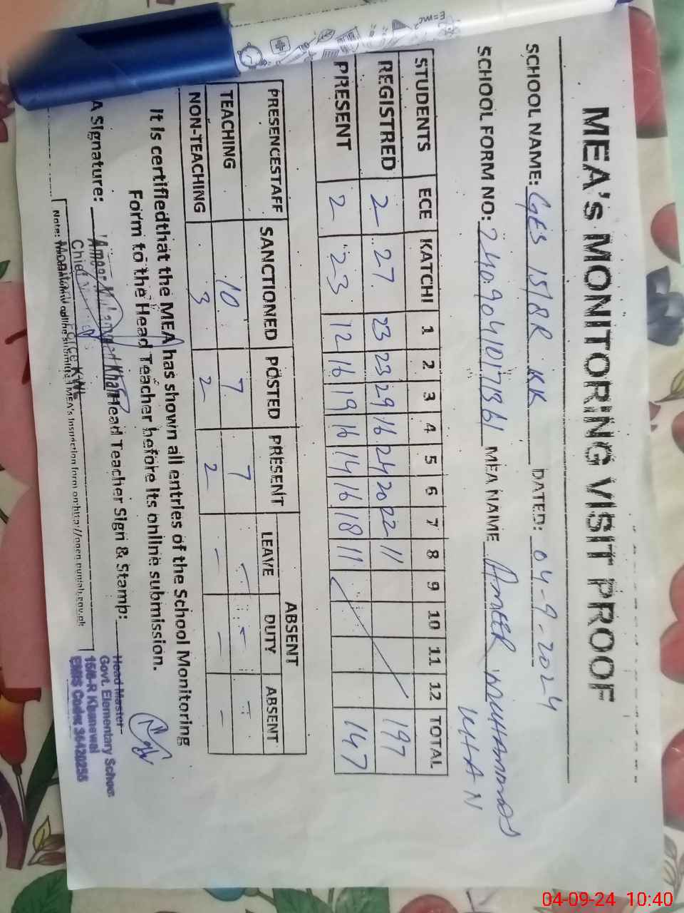 | Monitoring Date: 04-09-2024 | Start Time: 04-09-2024 09:31 AM | End Time: 04-09-2024 10:41 AM | Name of MEA: Am**** Mu**** Kh**** | |