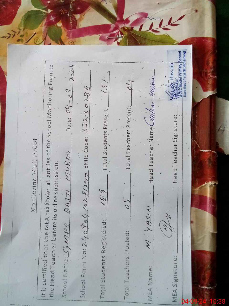 | EMIS Code: 33230288 | Name of School: GMPS BASTI MURAD | |||