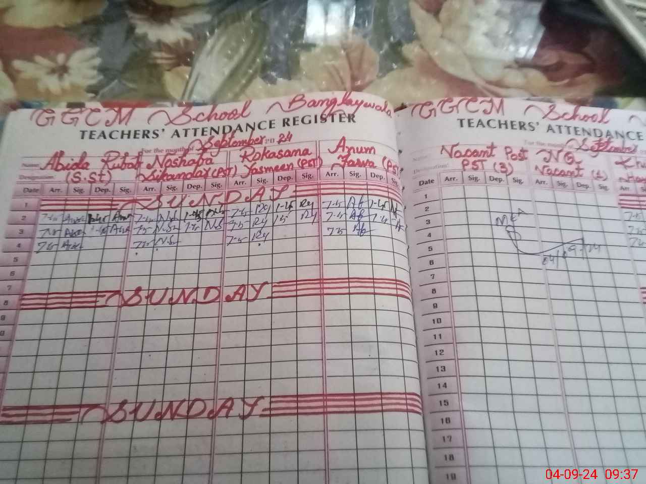 | Name: AB**** RU**** Designation: (School Headmaster's/Headmistress's) S.S.T.(Science) Phone/Cell Number: 03**** |