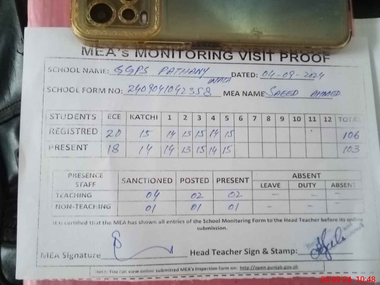 | EMIS Code: 36410349 | Name of School: GGPS PATHANEY WALA, KABIRWALA | |||