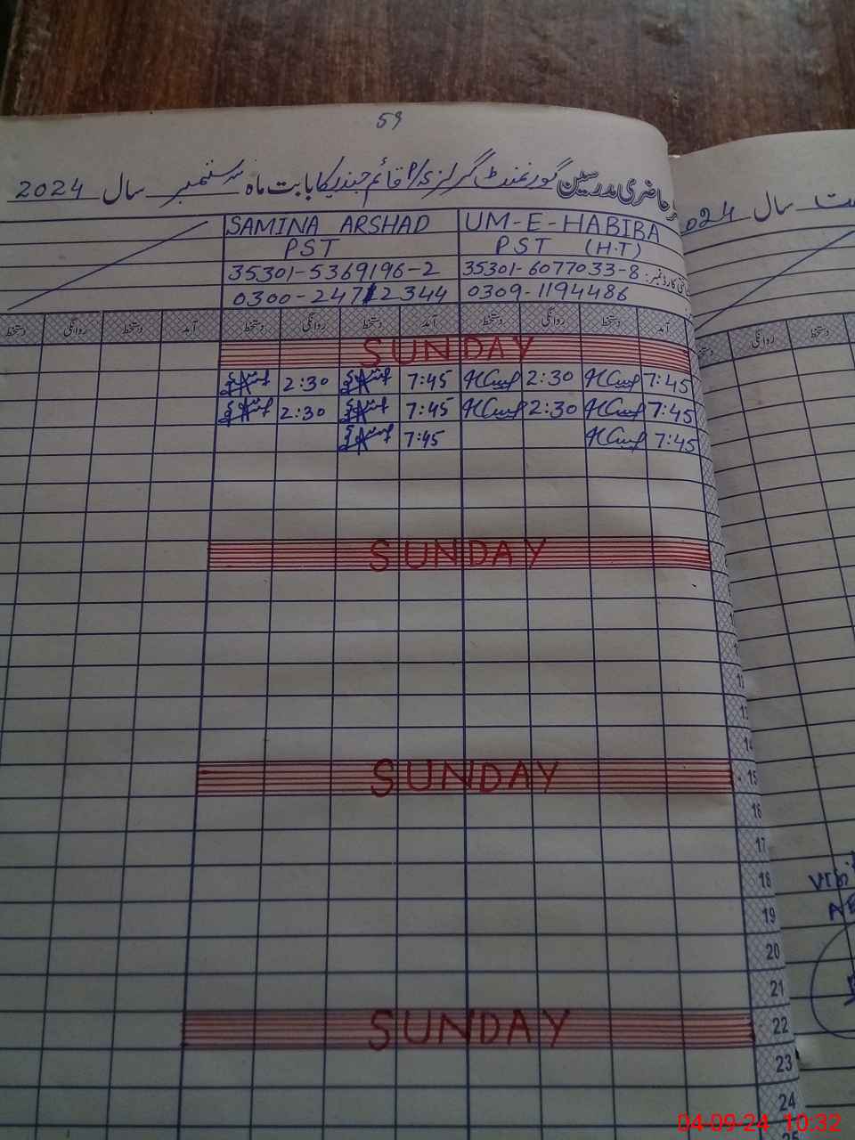 | Name: Um**** Ha**** Designation: (School Headmaster's/Headmistress's) PST Phone/Cell Number: 03**** |