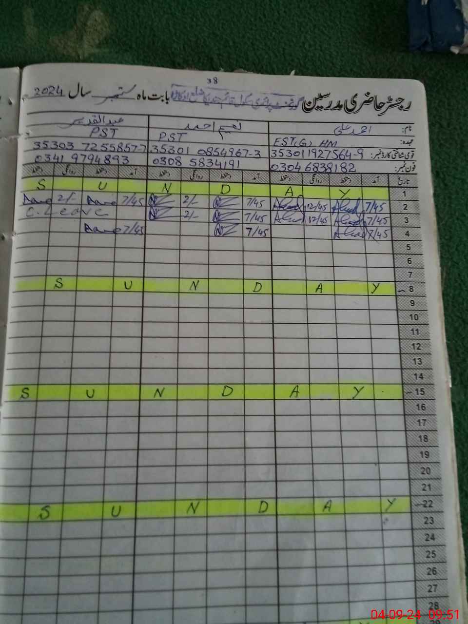 | Name: Mu**** Sh**** Designation: (School Headmaster's/Headmistress's) EST GEN Phone/Cell Number: 03**** |
