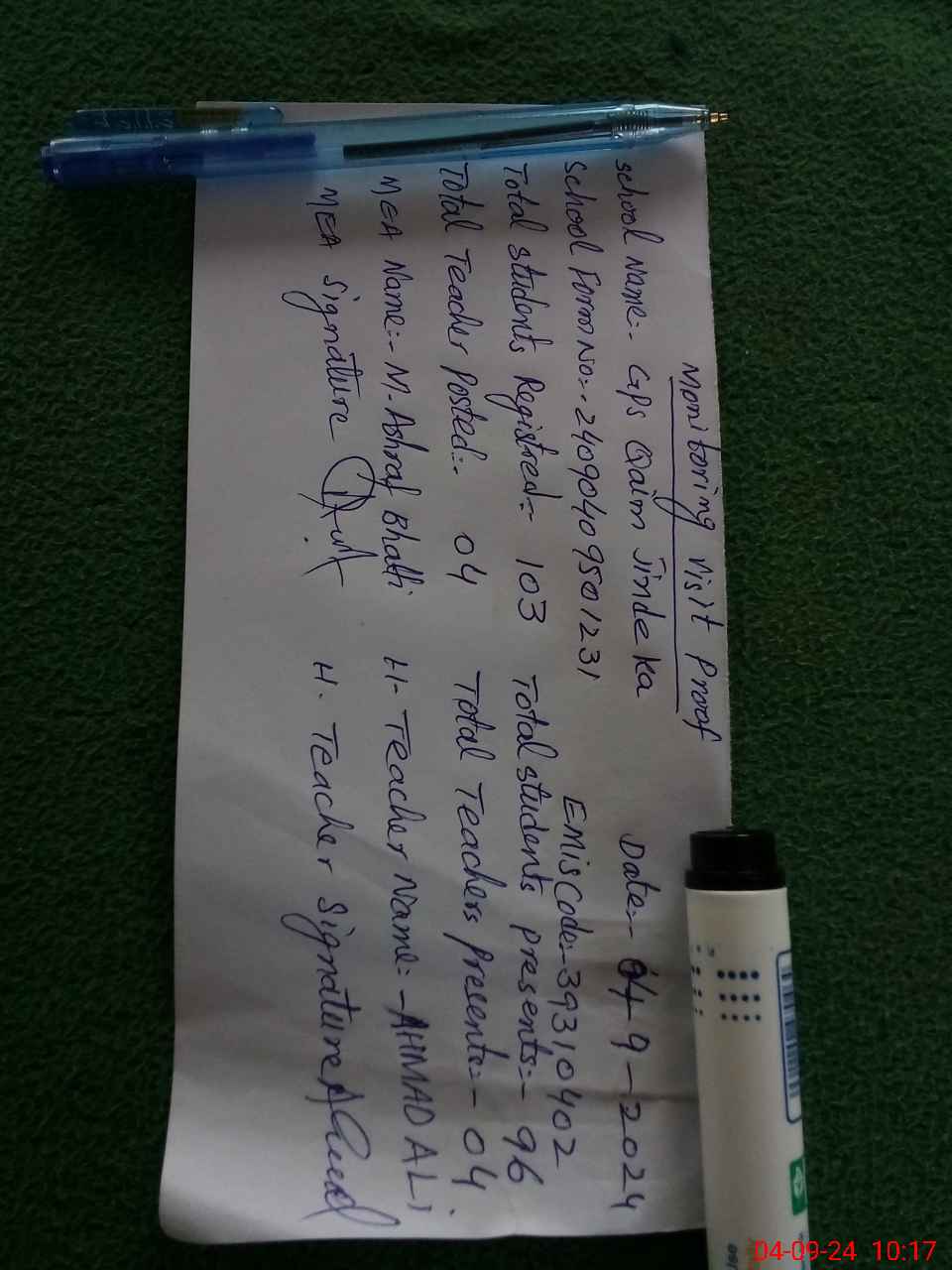 | EMIS Code: 39310402 | Name of School: GPS QAIM JINDE KA | |||