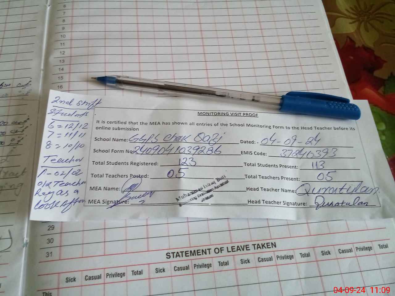 | EMIS Code: 37240393 | Name of School: GGPS CHAK QAZI | |||