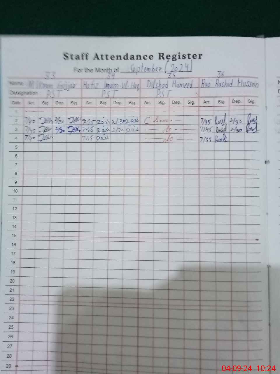 | CNIC | Full Name | Designation | R/C | Absence During Last Calender Month |