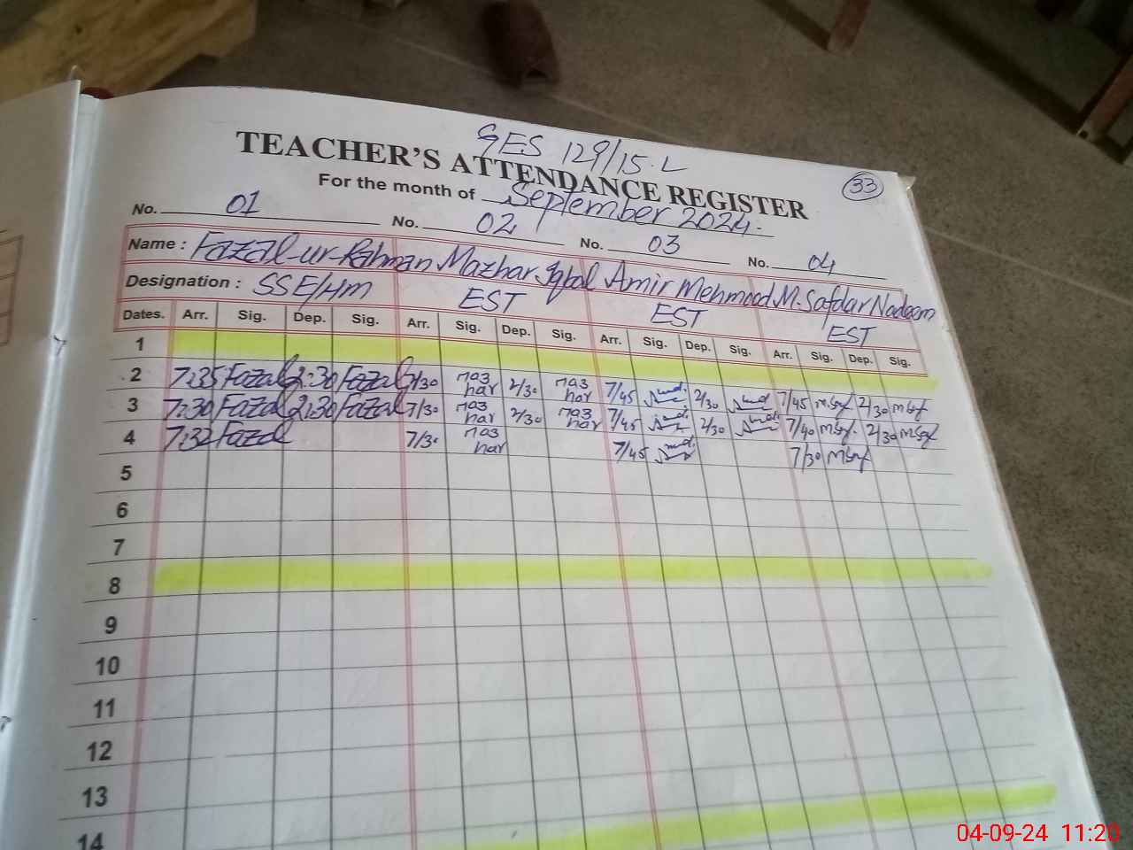 | Name: FA**** URRA**** Designation: (School Headmaster's/Headmistress's) SSE ENG Phone/Cell Number: 03**** |