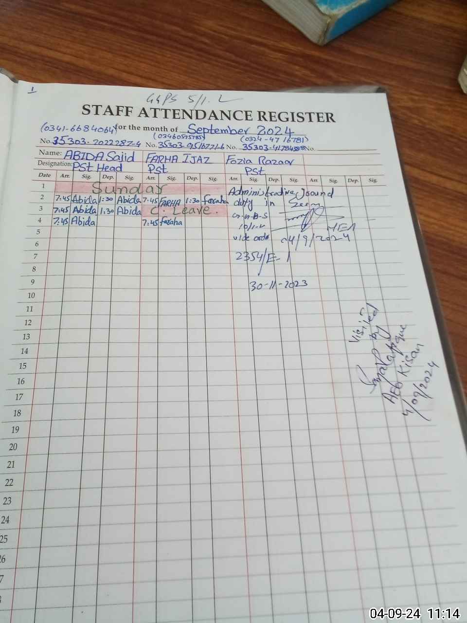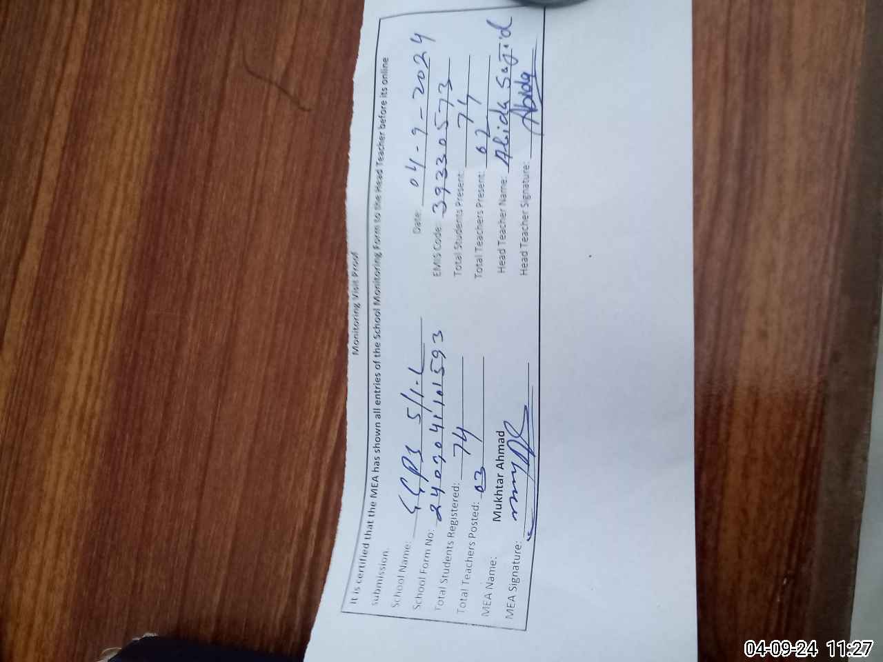 | Name: Ab**** Sa**** Designation: (School Headmaster's/Headmistress's) PST Phone/Cell Number: 03**** |