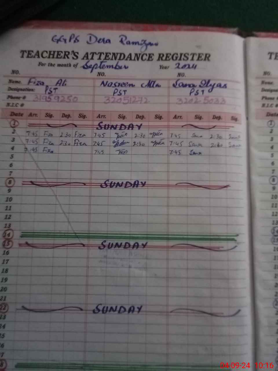 | Name: FI**** AL**** Designation: (School Headmaster's/Headmistress's) ESE Sci Math Phone/Cell Number: 03**** |