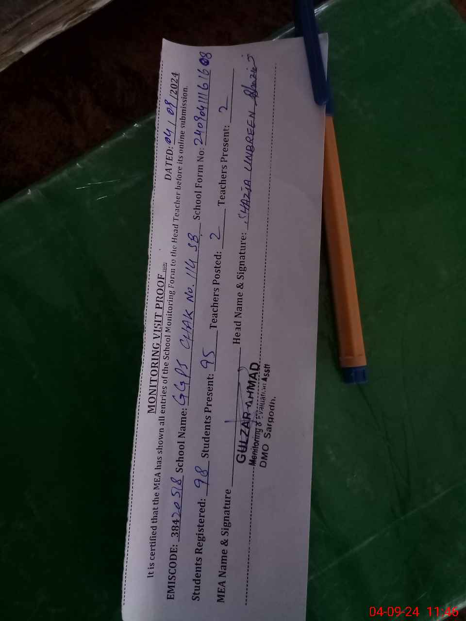 | EMIS Code: 38420518 | Name of School: GGPS CHAK NO.114 SB | |||