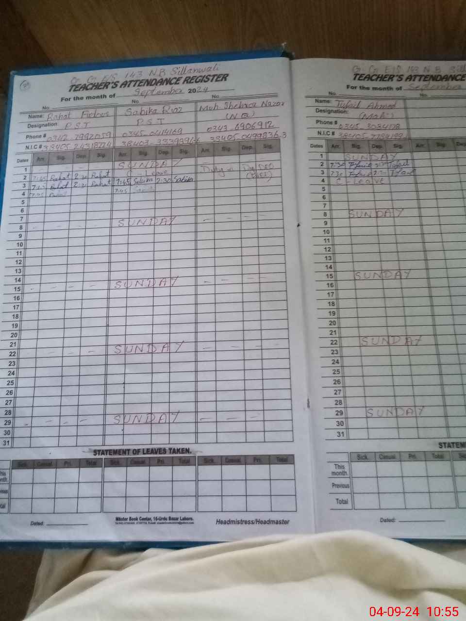 | Name: Sa**** Na**** Designation: (School Headmaster's/Headmistress's) SST Sci Phone/Cell Number: 03**** |