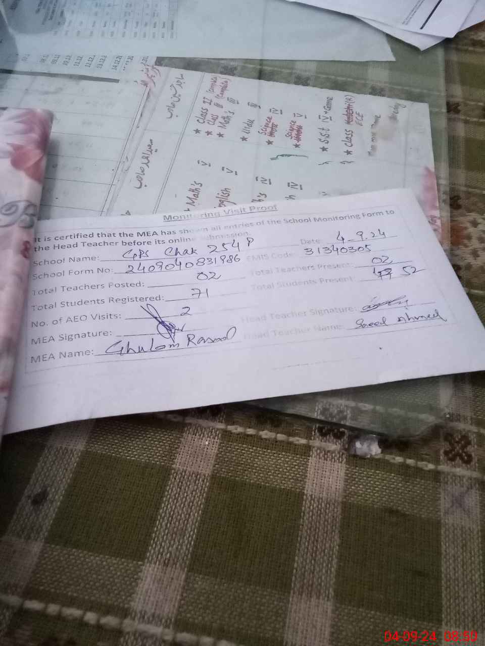 | EMIS Code: 31340305 | Name of School: GPS CHAK NO 254/P | |||