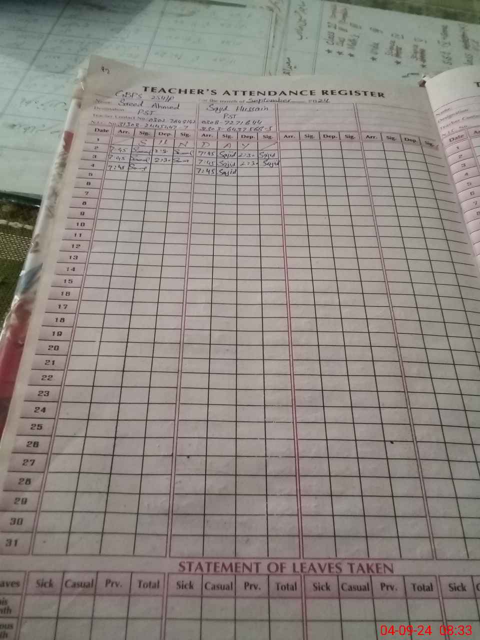 | Name: Sa**** Ah**** Designation: (School Headmaster's/Headmistress's) PST Phone/Cell Number: 03**** |