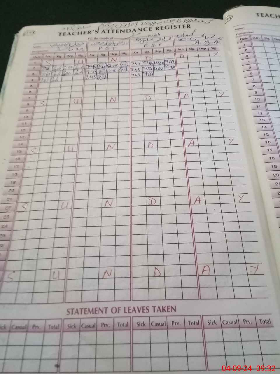 | Leave | Duty | Absent | Maternity | Medical | Ex- Pak |