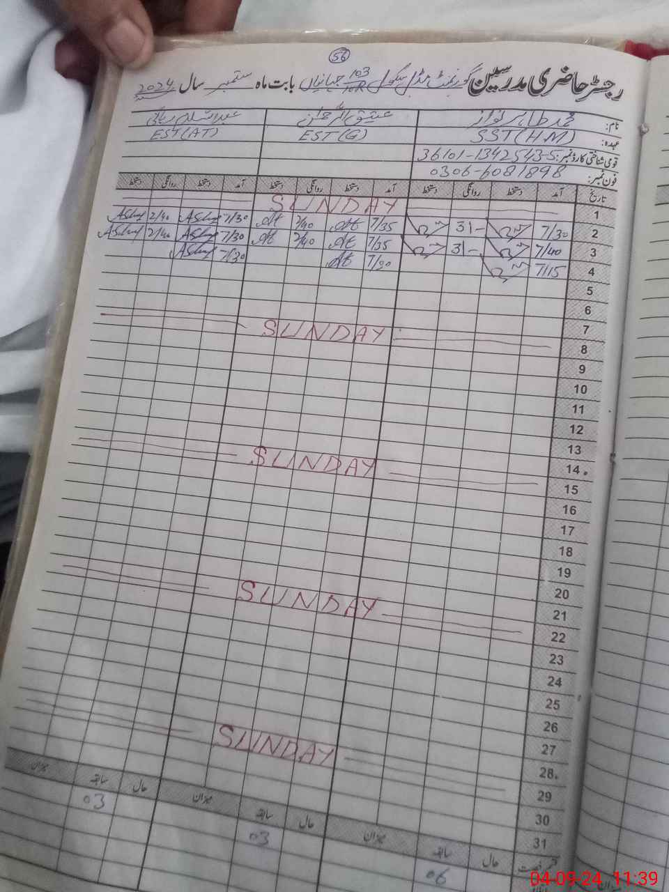 | Name: MTa**** Na**** Designation: (School Headmaster's/Headmistress's) SST GENERAL Phone/Cell Number: 03**** |