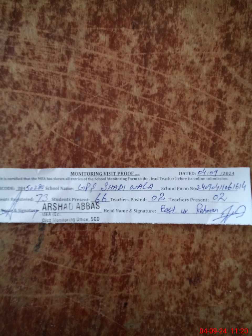 | EMIS Code: 38450280 | Name of School: GPS SHAHDI WALA | |||