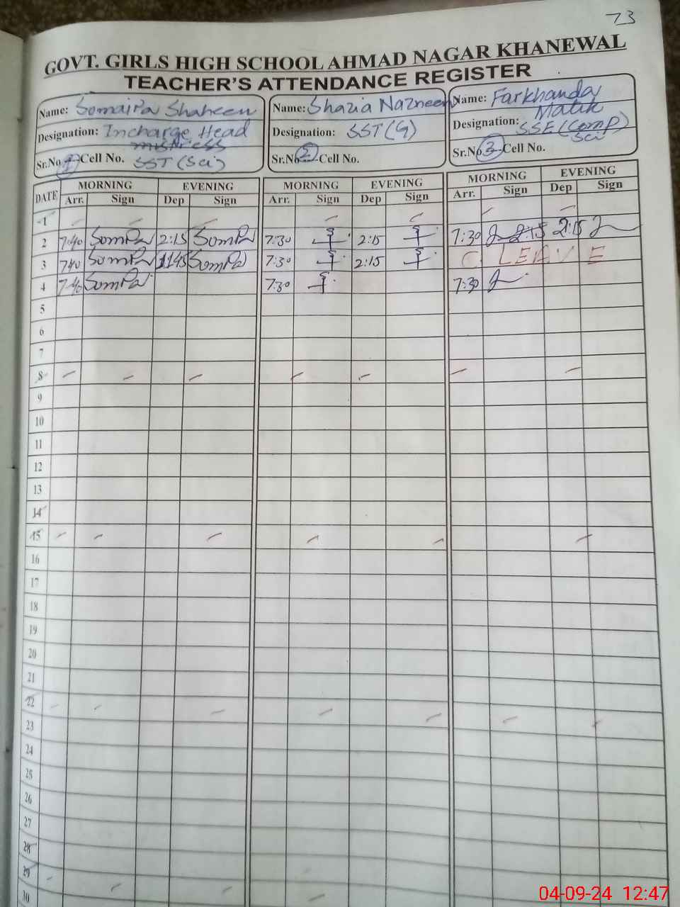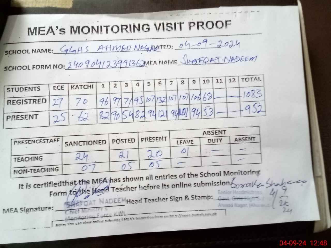 | EMIS Code: 36420095 | Name of School: GGHS AHMAD NAGAR, KHANEWAL | |||