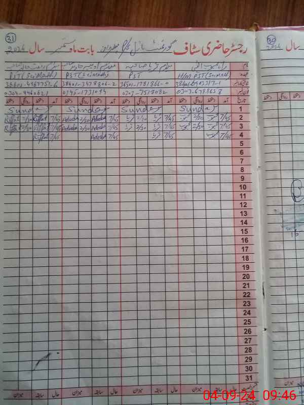 | Name: RA**** ME**** EL**** Designation: (School Headmaster's/Headmistress's) PST Phone/Cell Number: 03**** |