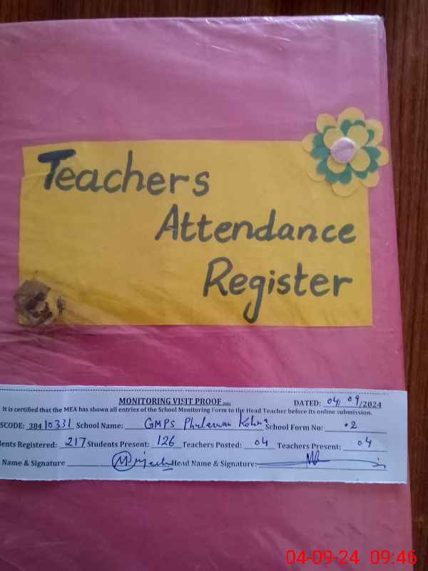 | Attendance Register | Head Teacher | MEA with School | Visit Proof |