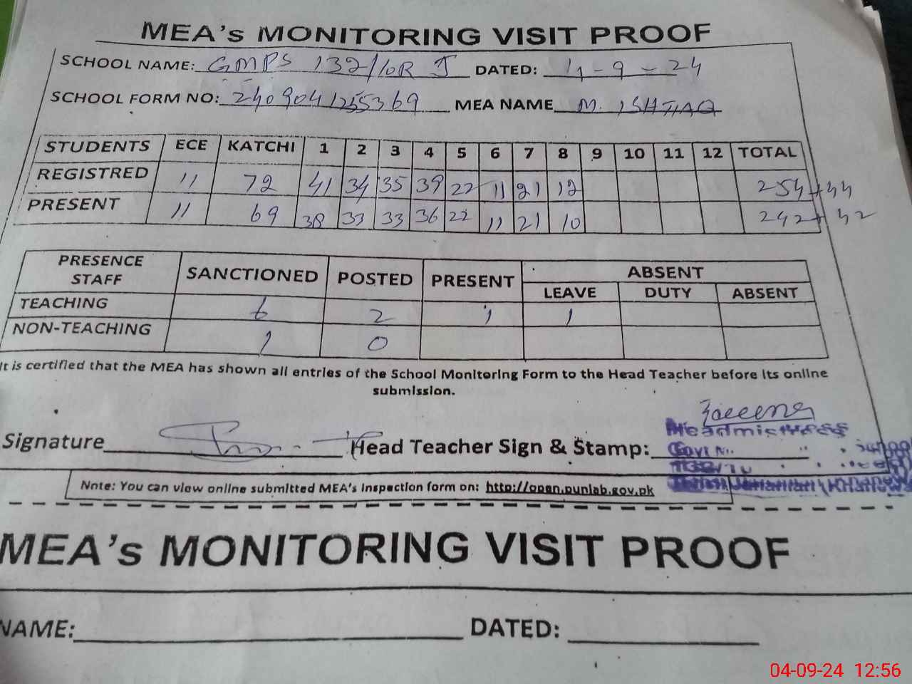 | EMIS Code: 36440483 | Name of School: GPMS 132/10-R JADEED, JAHANIAN | |||