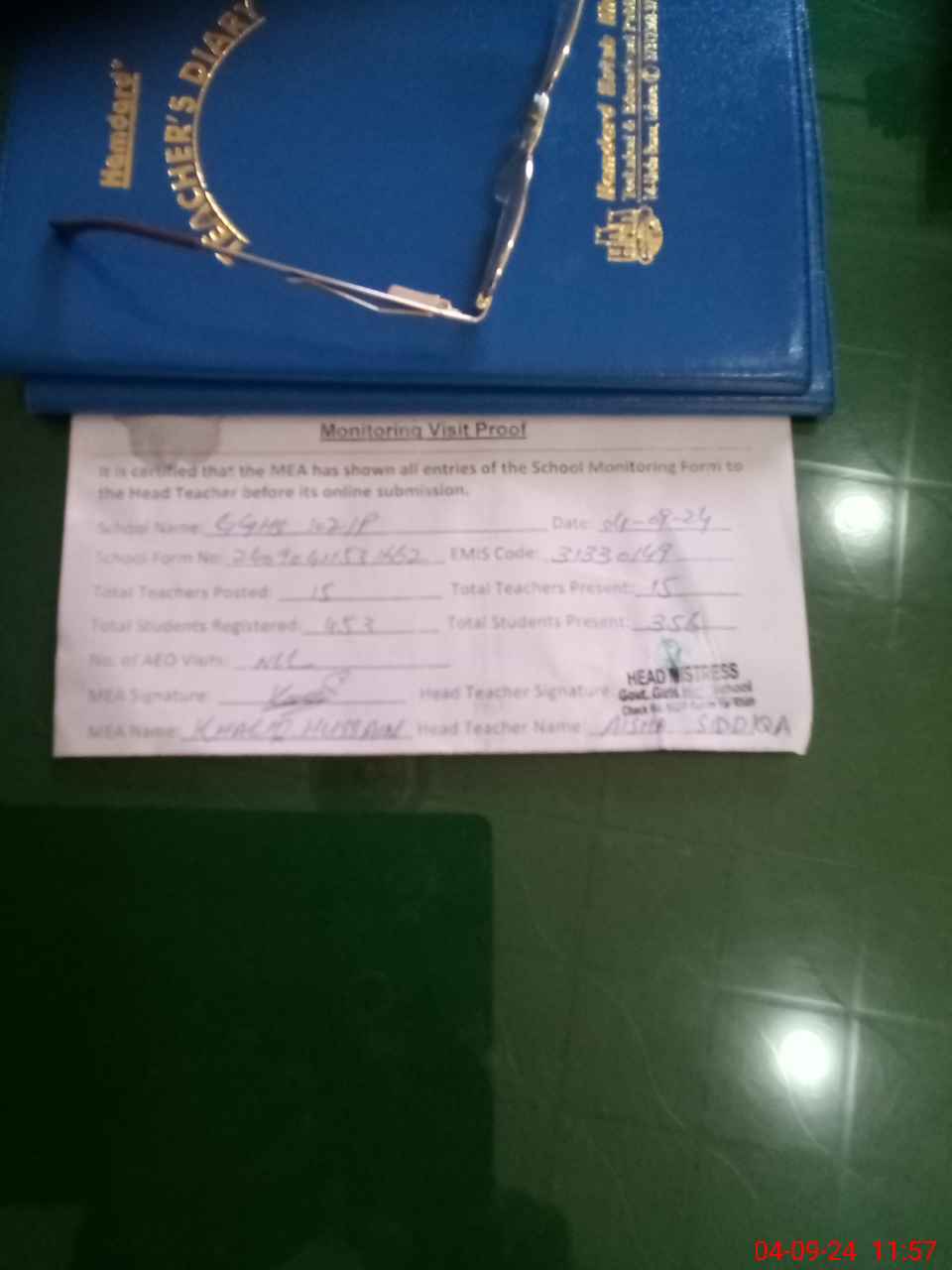 | EMIS Code: 31330149 | Name of School: GGHS CHAK NO. 102/P | |||