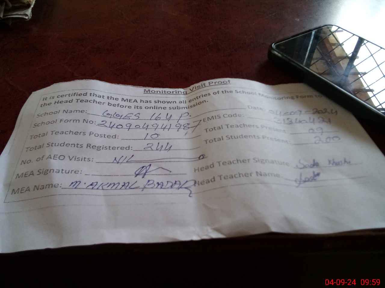 | Certified that this School was Inspected by the Undersigned MEA/DMO Today and the Information Stated Above is as Per Record. | |||||