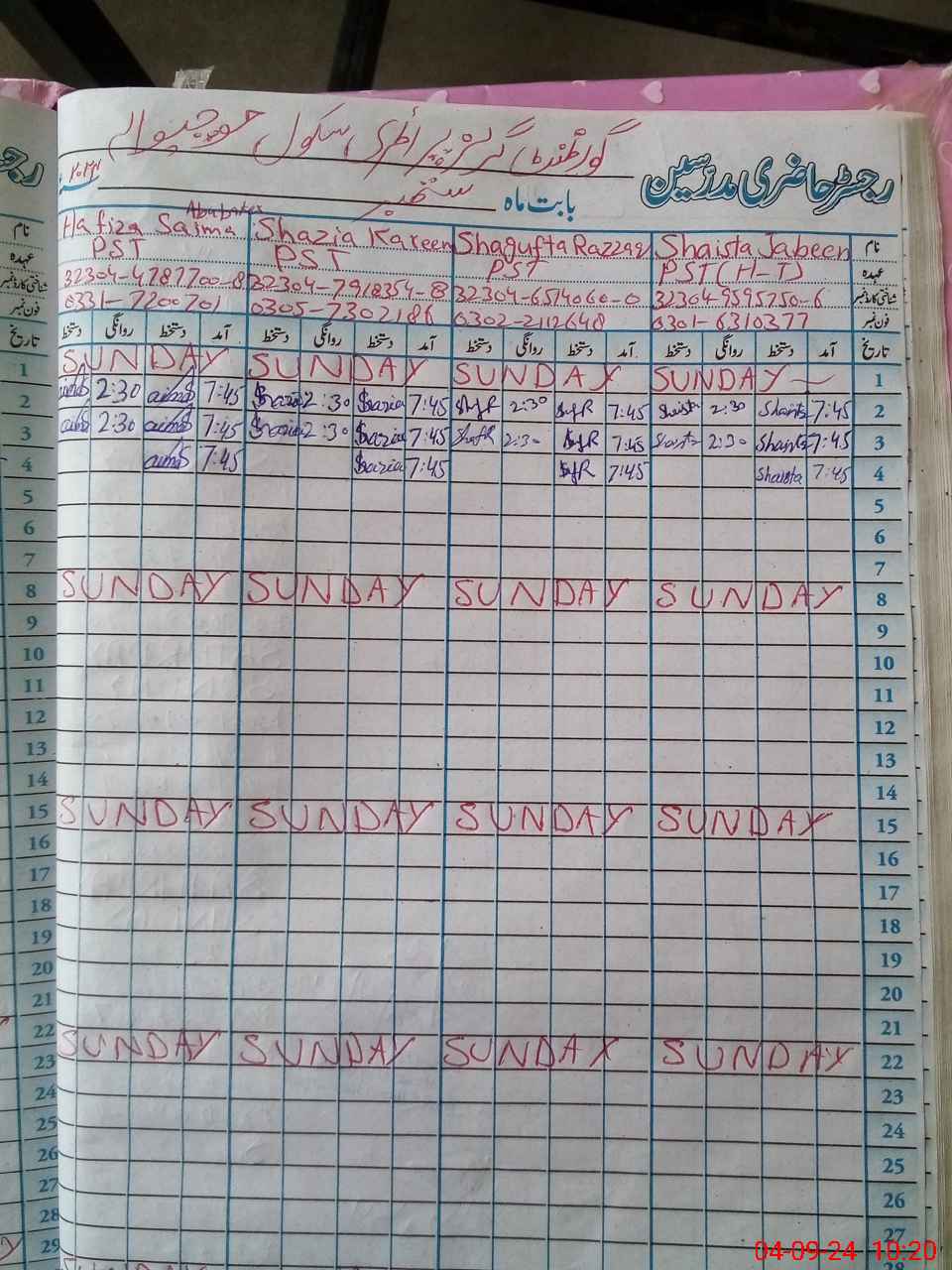 | Name: Sh**** Ja**** Designation: (School Headmaster's/Headmistress's) PST Phone/Cell Number: 03**** |