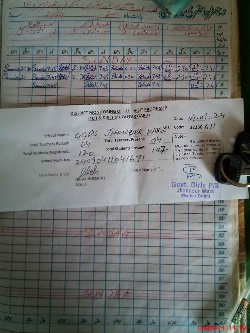 | EMIS Code: 32330611 | Name of School: GGPS JHANDEER WALA | |||
