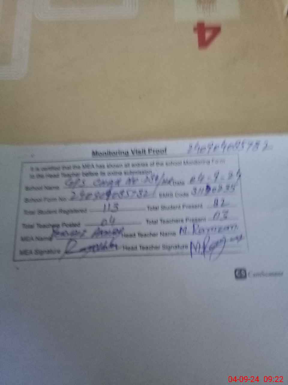 | EMIS Code: 31130235 | Name of School: GPS CHAK NO 284 HR | |||