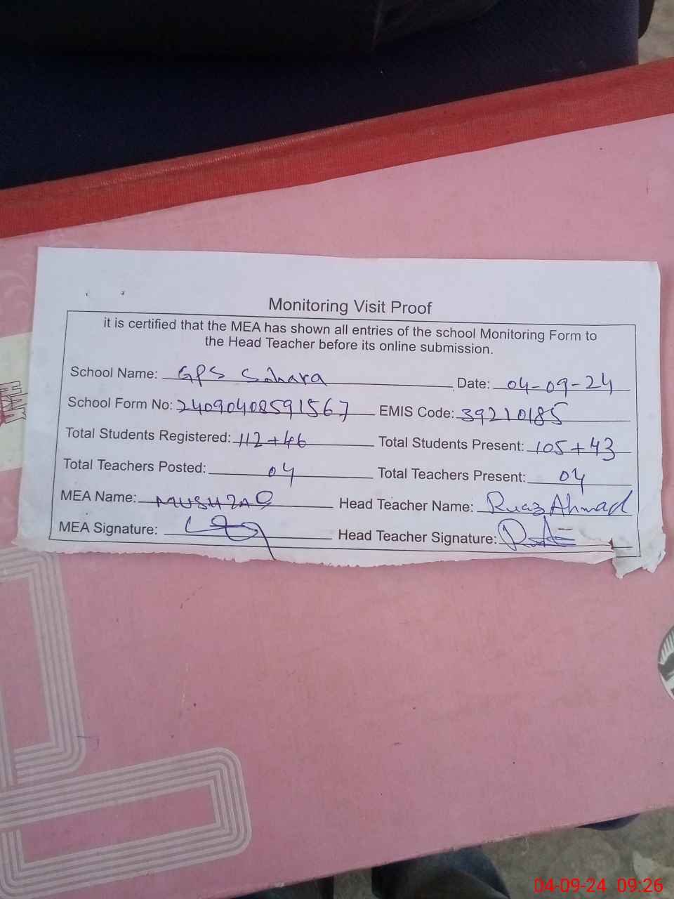 | EMIS Code: 39210185 | Name of School: GPS SOHARA | |||