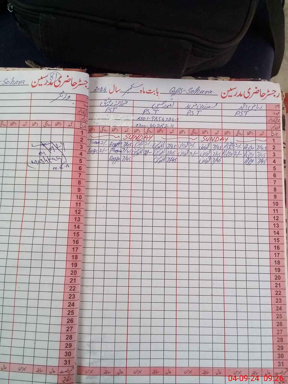 | Name: RI**** AH**** Designation: (School Headmaster's/Headmistress's) PST Phone/Cell Number: 03**** |