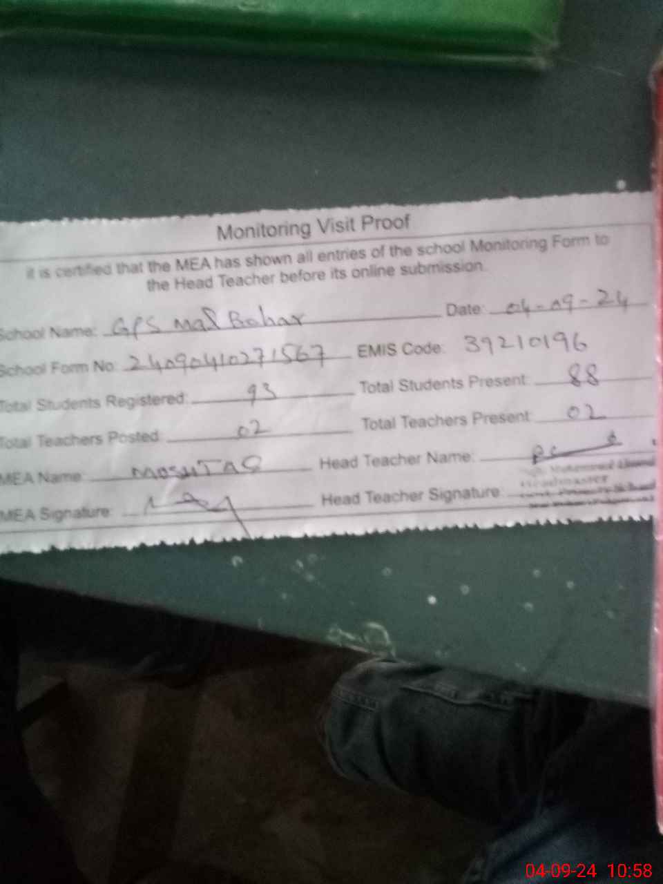 | EMIS Code: 39210196 | Name of School: GPS MAL BOHAR PO PAKPATTAN | |||