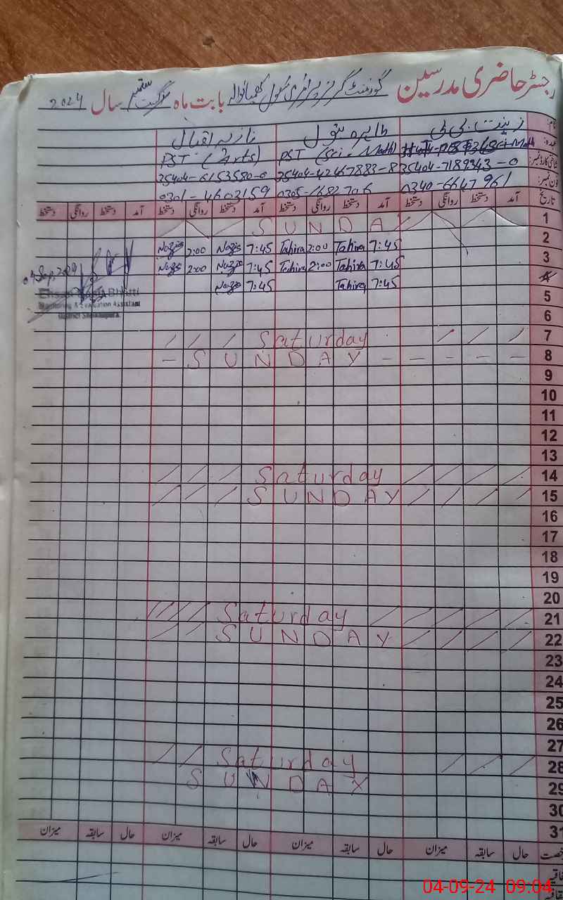| Name: SA**** SA**** Designation: (School Headmaster's/Headmistress's) PST Phone/Cell Number: 03**** |