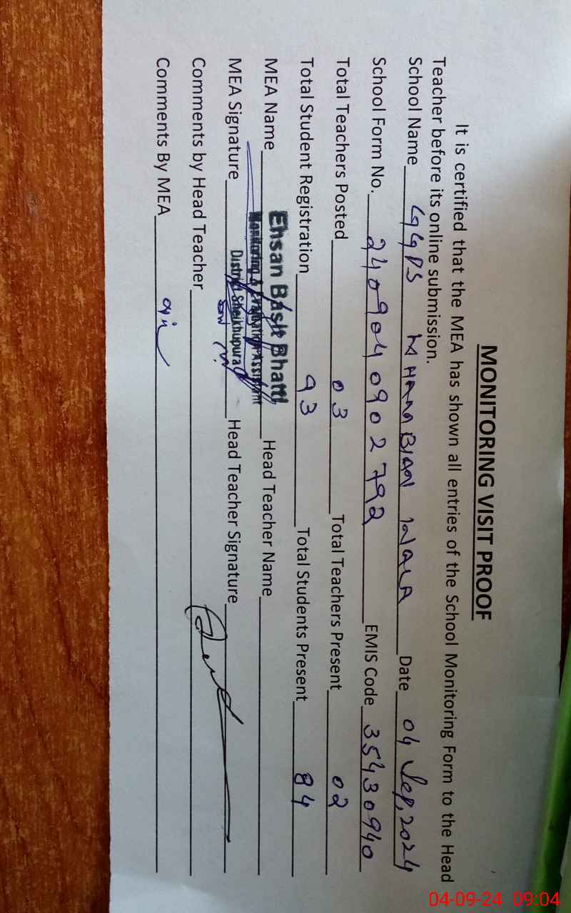 | Certified that this School was Inspected by the Undersigned MEA/DMO Today and the Information Stated Above is as Per Record. | |||||