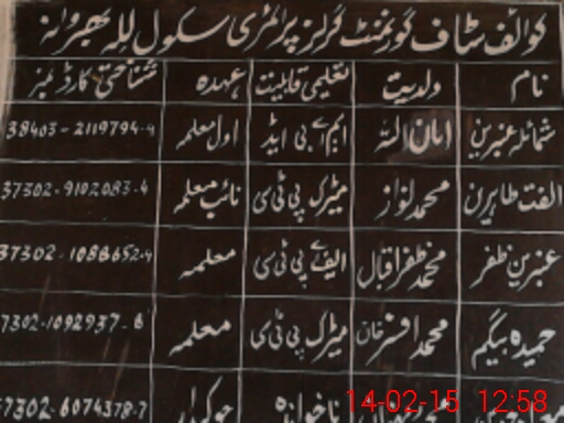 | Name: Ab**** Sh**** Designation: (School Headmaster's/Headmistress's) Headmaster Phone/Cell Number: 03**** |