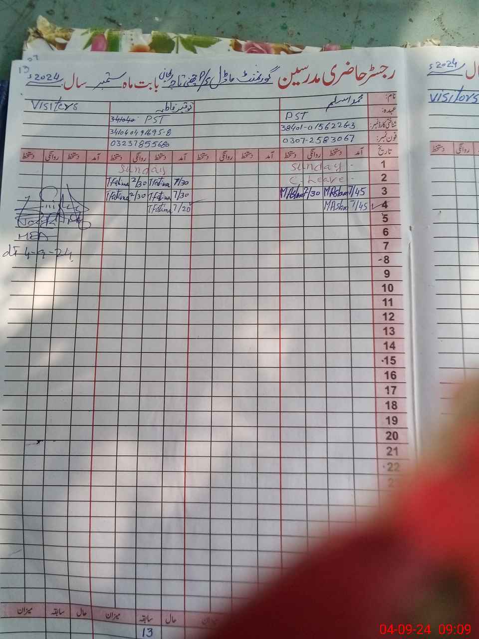 | Name: Mu**** As**** Designation: (School Headmaster's/Headmistress's) P S T Phone/Cell Number: 03**** |