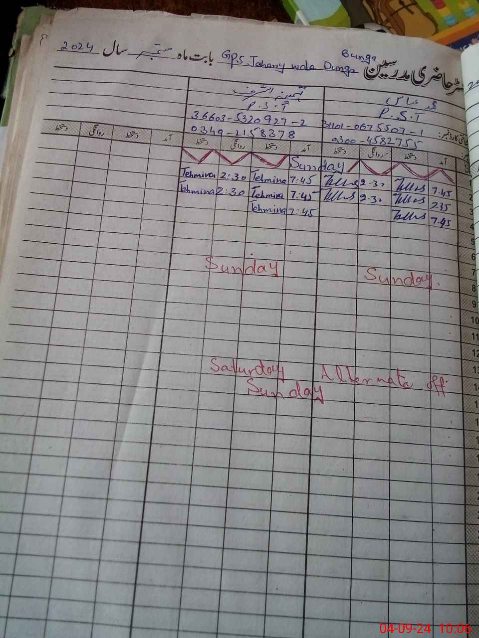 | Name: MU**** AB**** Designation: (School Headmaster's/Headmistress's) PST Phone/Cell Number: 03**** |
