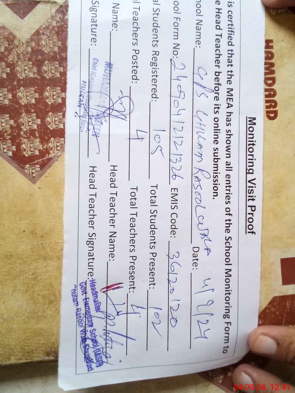 | EMIS Code: 36120120 | Name of School: GPS GHULAM RASOOL WALA P/O MATOTLI | |||