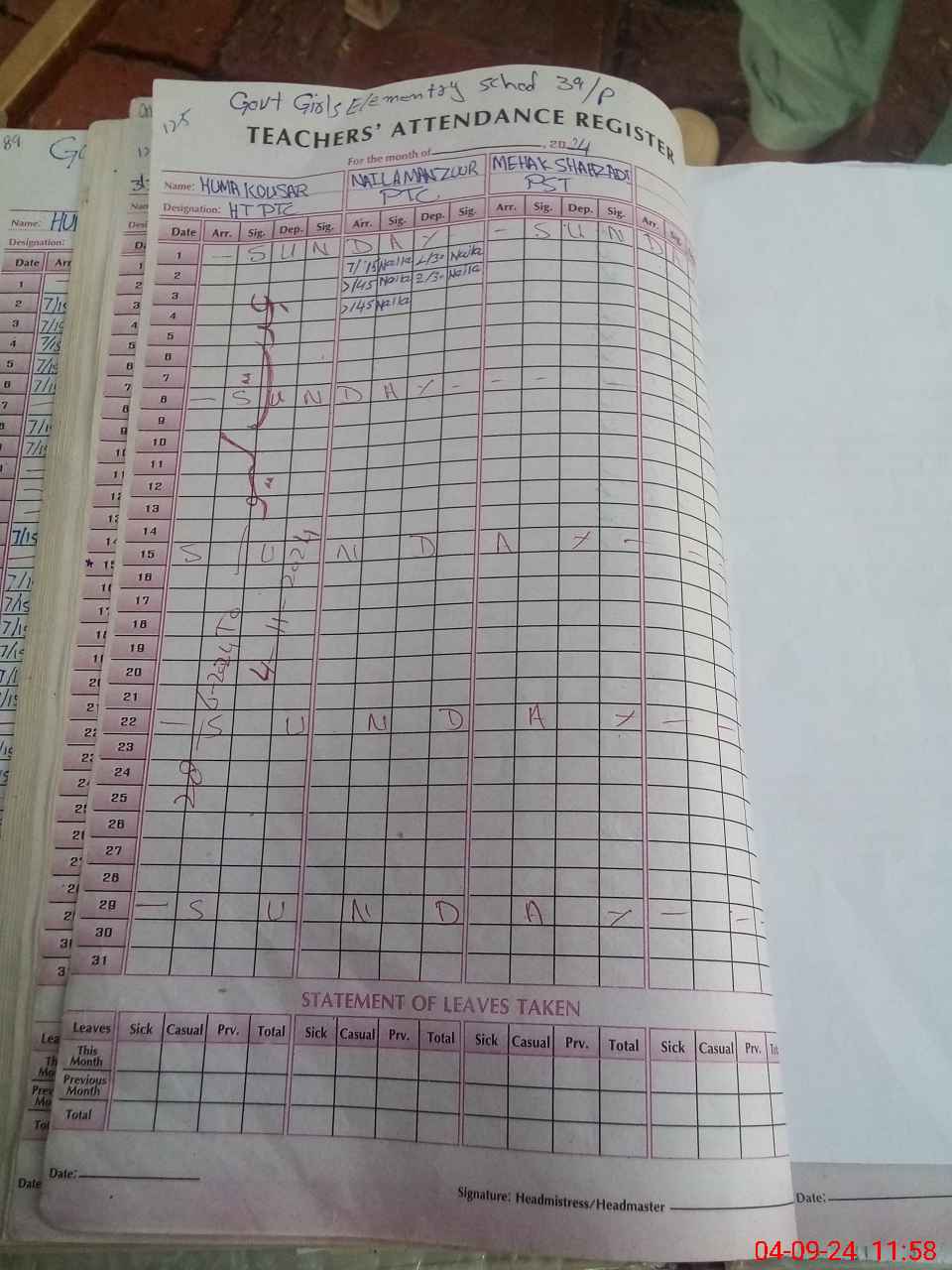| 36**** | Me**** Sh**** | 1 | 1 | 0 | 0 | 0 | 0 | 0 | 0 | 0 | 0 | 0 | Absent (Un-Authorized) |