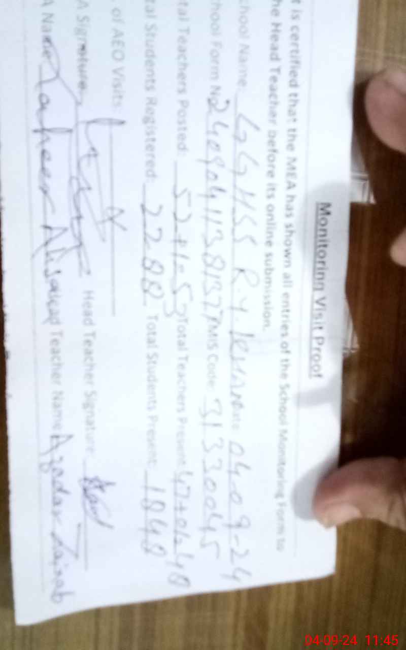 | Certified that this School was Inspected by the Undersigned MEA/DMO Today and the Information Stated Above is as Per Record. | |||||