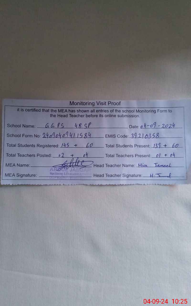 | EMIS Code: 39210358 | Name of School: GGPS 48 SP | |||