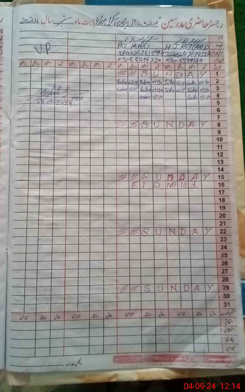 | Name: Si**** Na**** Designation: (School Headmaster's/Headmistress's) PST Phone/Cell Number: 03**** |