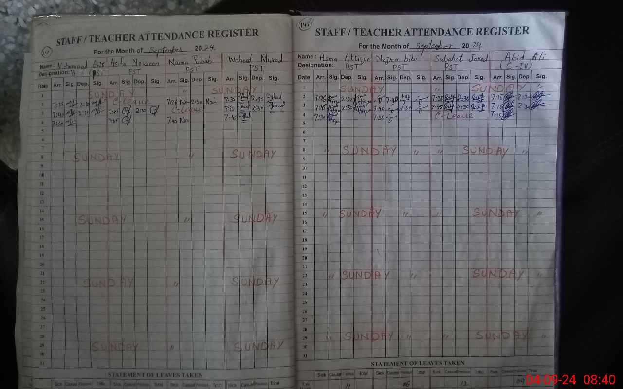 | Attendance Register | Head Teacher | MEA with School | Visit Proof |