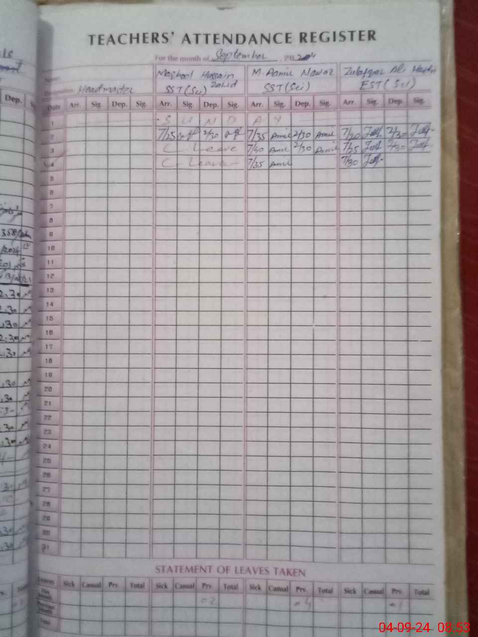 | 36**** | Ma**** Hu**** Za**** | SST | Regular | 0 | 0 | 0 | 0 | 0 | 0 | 0 | 0 | 0 | Casual |