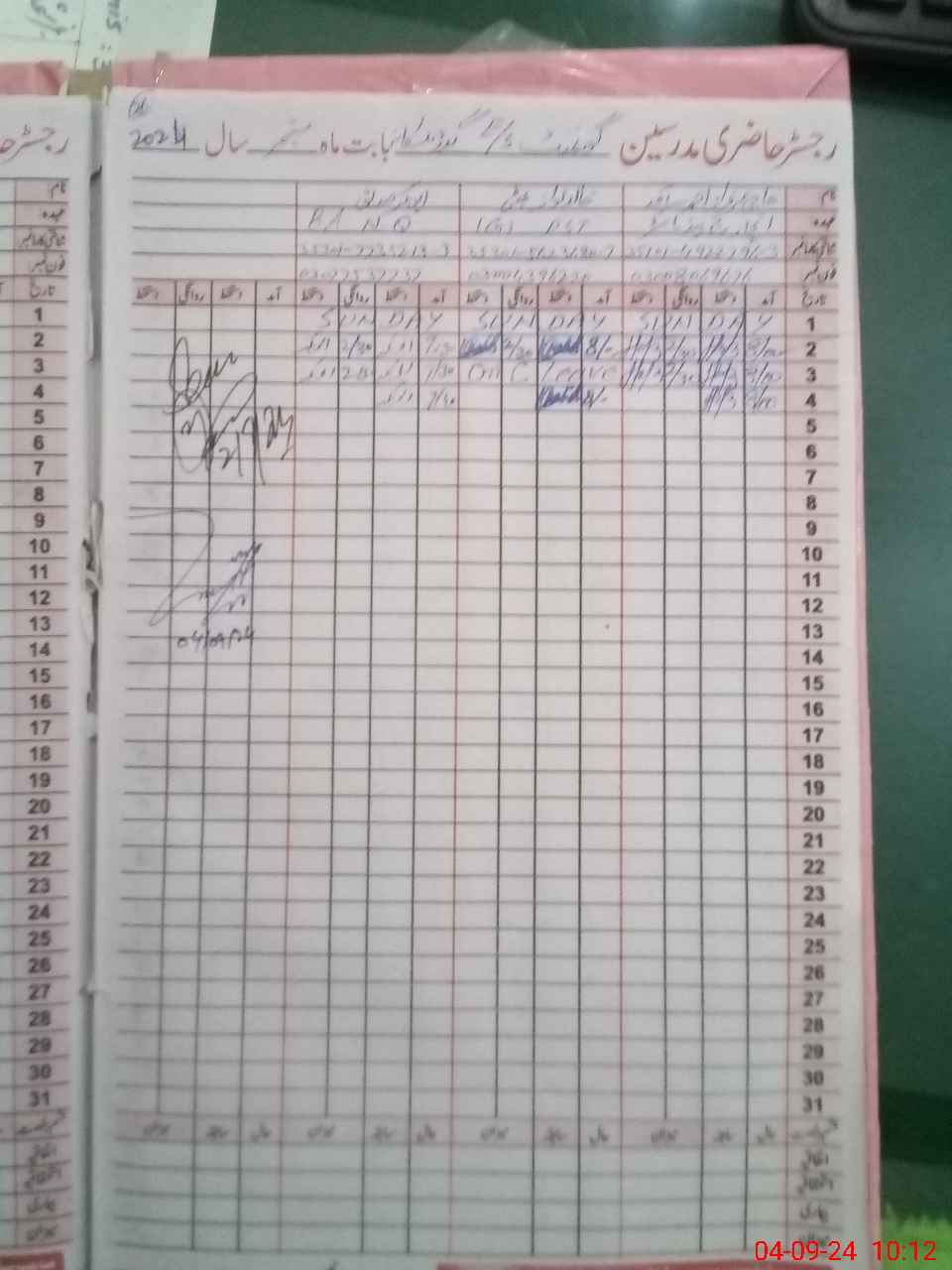 | CNIC | Full Name | Designation | R/C | Absence During Last Calender Month |