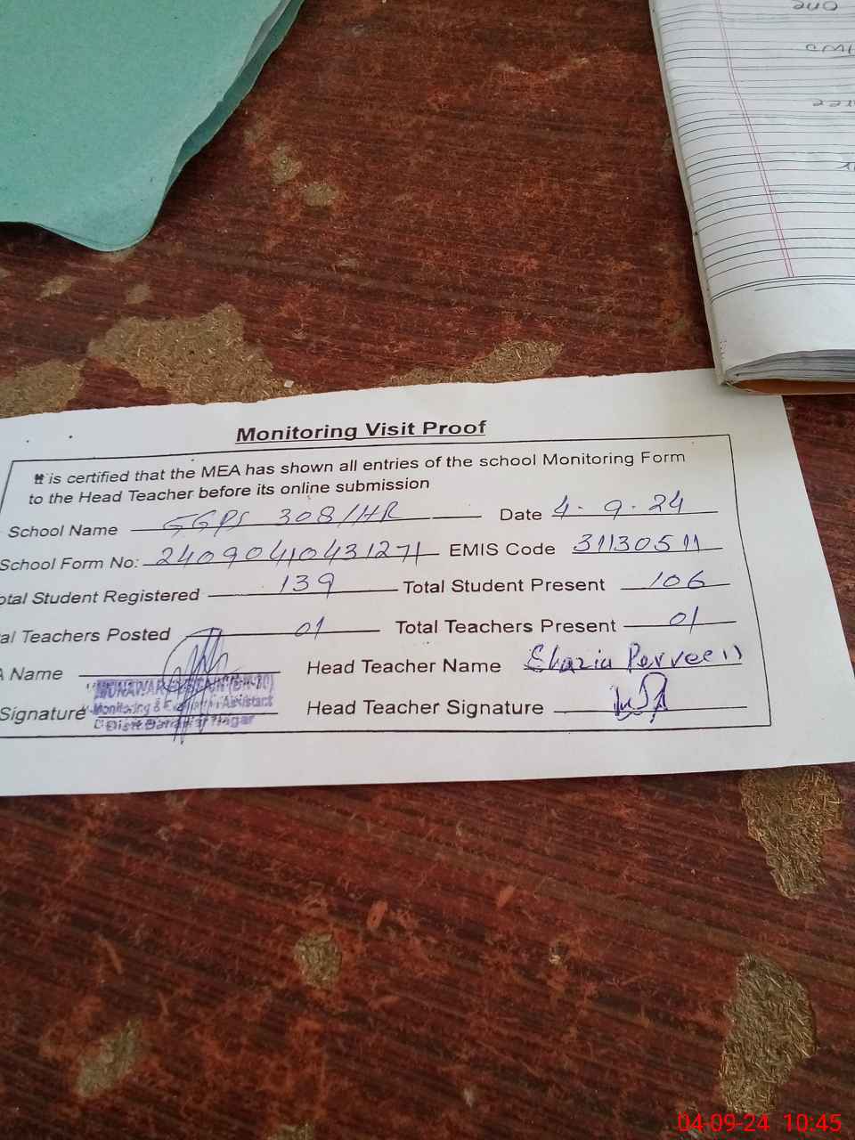 | EMIS Code: 31130336 | Name of School: GGPS CHAK 308/HR | |||
