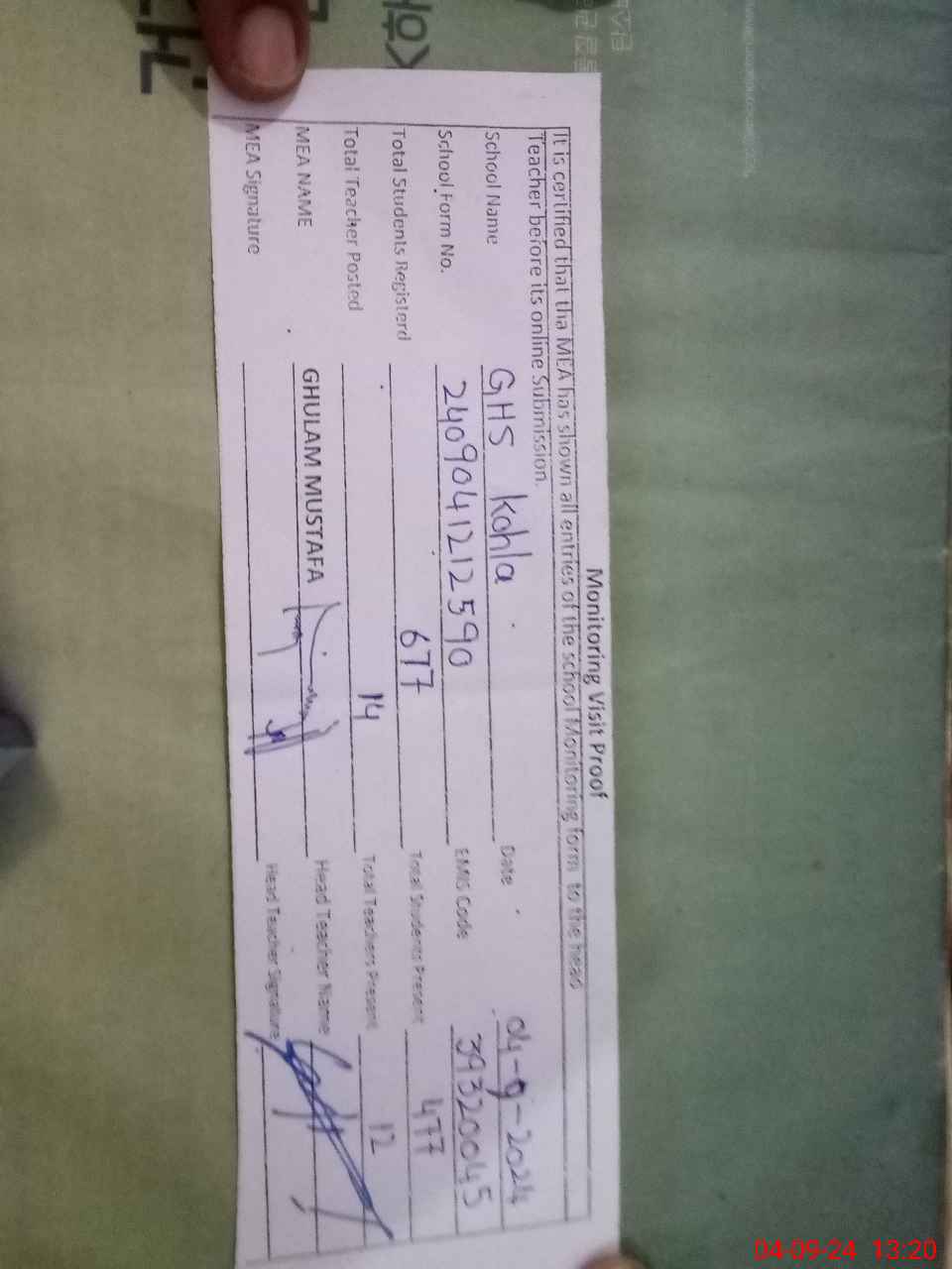 | EMIS Code: 39320045 | Name of School: GHS KOHLA | |||