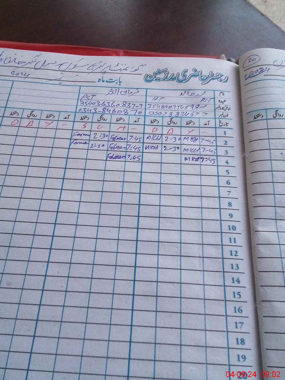 | CNIC | Full Name | Designation | R/C | Absence During Last Calender Month |