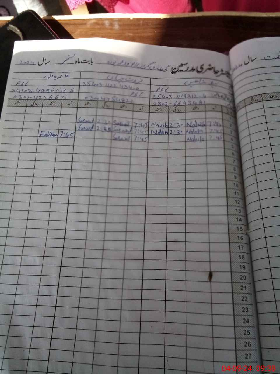 | Name: NA**** SH**** Designation: (School Headmaster's/Headmistress's) PST Phone/Cell Number: 03**** |