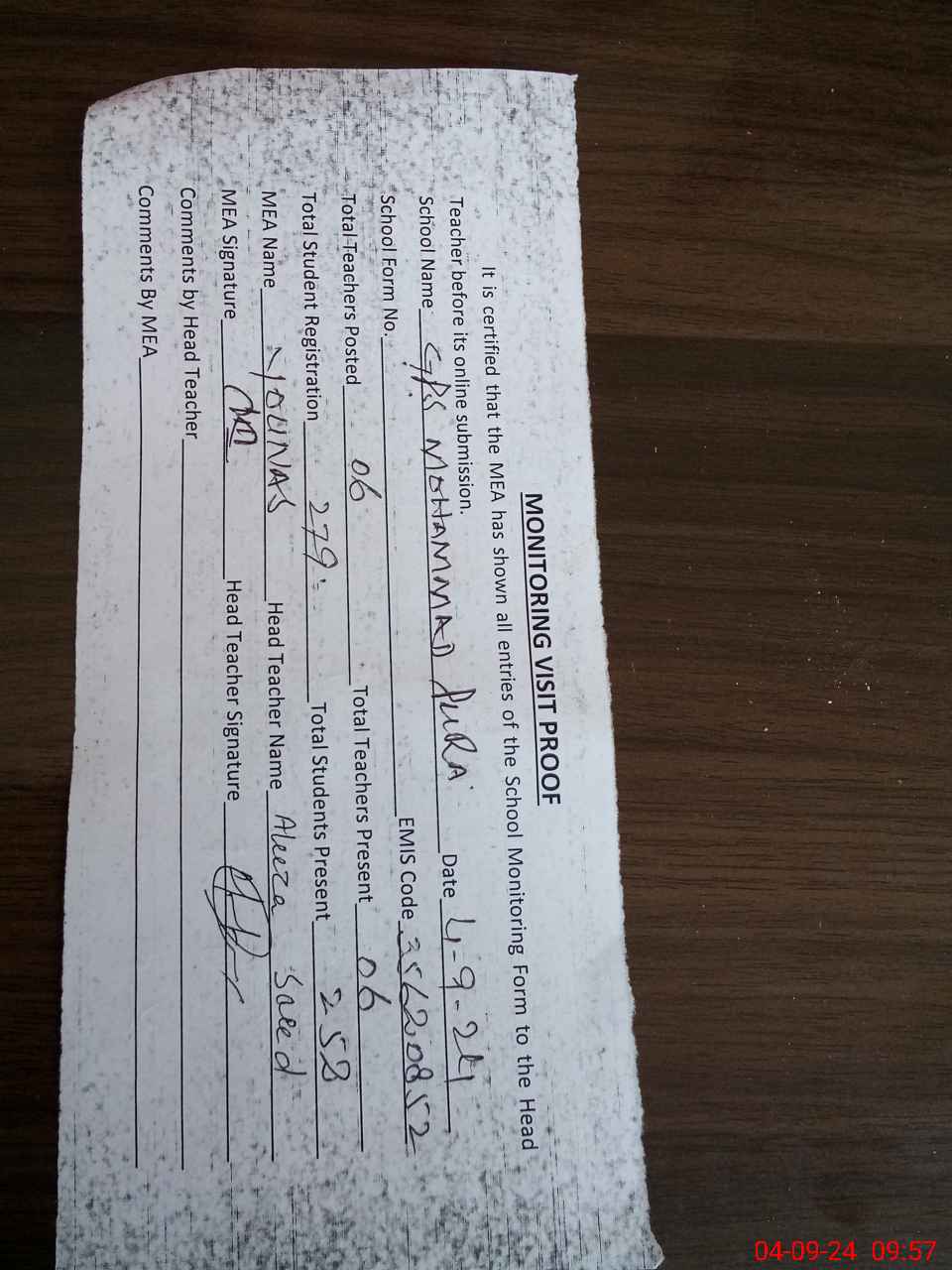 | EMIS Code: 35620852 | Name of School: GGPS MOHALAH MUHAMMAD PURA | |||